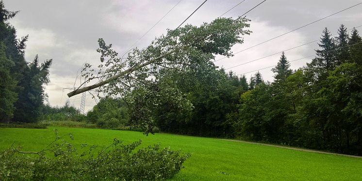 Nur etwas für Forstprofis: Baumarbeiten in der Nähe von Freileitungen sind lebensgefährlich.