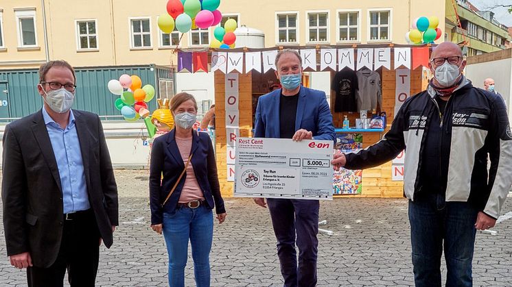 5.000 Euro aus dem Mitarbeiter-Hilfsfonds der E.ON SE hat der Erlanger Verein Toy Run am Samstag, 8. Mai, erhalten. Der Verein unterstützt die Patienten der Kinder- und Jugendklinik Erlangen. Die Spende der E.ON-Mitarbeiter soll für dringend benötigtes Spielzeug verwendet werden.
