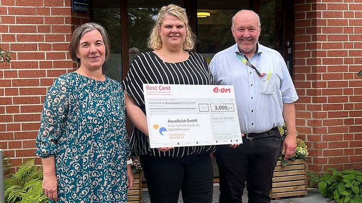 Mit einer Spende in Höhe von 3.000 Euro unterstützt der Hilfsfonds Rest Cent der Mitarbeitenden des E.ON-Konzerns das Kinderhaus AtemReich. Hier finden bis zu 18 Kinder, die nicht eigenständig atmen können, ein liebevolles Zuhause.