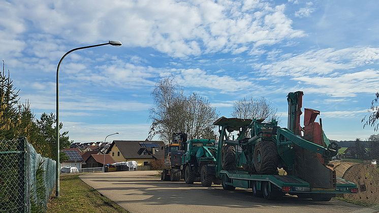 Rund zwei Kilometer Freileitung ersetzen die Techniker im nächsten Bauabschnitt durch leistungsstärkere Mittelspannungskabel. Auf einer Länge von dreieinhalb Kilometern wird das neue Kabel unter der Erde verlaufen. Im Anschluss können die Techniker neben der Freileitung auch 15 Maste zurückbauen. Mit den Arbeiten ist die Partnerfirma Rädlinger beauftragt. Die Firma Max Streicher unterquert die Kreisstraße SAD 24 mit einer schonenden Spülbohrtechnik. Bis Ende 2024 sollen die Arbeiten abgeschlossen sein.
