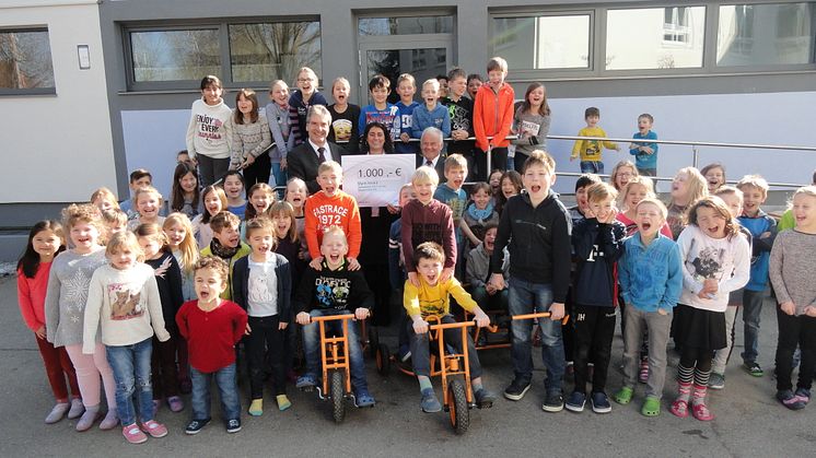 Franz-Josef Bloier, Kommunalbetreuer des Bayernwerks, übergab die Spende in Höhe von 1.000 Euro am Mittwoch, den 15. Februar, im Beisein von Bürgermeister Hubert Gschwendtner an Grundschulleiterin Doris Orsan. Von dem Geld sollen Fitness- und Freizeitgeräte für Bewegung und Freizeitspaß der Kinder angeschafft werden. „Wir setzen uns als Unternehmen in der Energiebranche nicht nur für die Energiezukunft als solche ein, sondern auch für diejenigen, die diese in Zukunft gestalten. Dazu haben wir beispielsweise auch zahlreiche Kooperationen mit Schulen und Kindergärten, die wir mit Lernbroschüren oder bei Exkursionen unterstützen“, erläuterte Franz-Josef Bloier das Engagement des Bayernwerks.