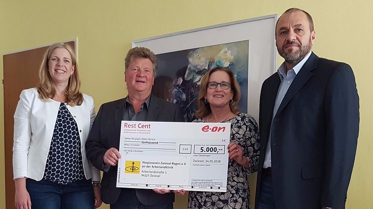 Unterstützt wird diese Hospizarbeit nun auch durch die Mitarbeiterinnen und Mitarbeiter des E.ON-Konzerns. Seit vielen Jahren verzichtet ein Großteil der Kolleginnen und Kollegen in Deutschland am Monatsende auf die Auszahlung von Netto-Cent-Beträgen – freiwillig und für einen guten Zweck. Diese Beträge fließen in den sogenannten Hilfsfonds „RestCent“. Die dabei auflaufende Summe wird durch den E.ON-Konzern verdoppelt und wohltätigen Zwecken zugeführt.