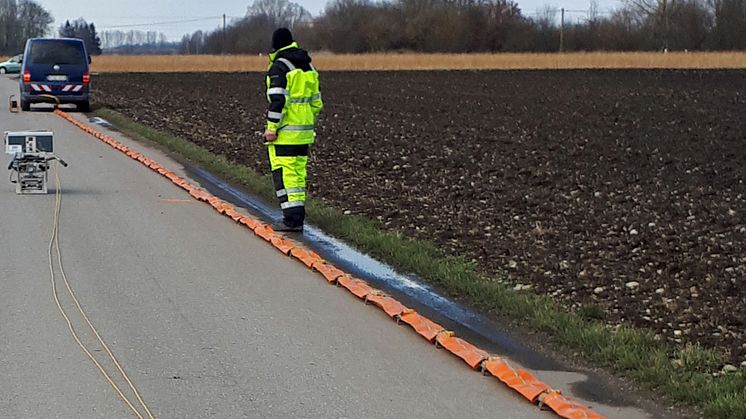 „Da über die grundsätzliche Anwendbarkeit der Methodik bei der lokalen Bodenbeschaffenheit noch keine vergleichbaren Untersuchungen vorlagen, sollten die Probemessungen zeigen, inwieweit diese Methode innerhalb eines Forschungsprojekts zur Untersuchung der aktuellen Erdbeben zu weiterführenden Ergebnissen beitragen kann“, erklärt Professor Inga Moeck. Seismische Messungen gehören zu den zerstörungsfreien Methoden, um den geologischen Untergrund zu untersuchen. Im Versuchsverlauf wurden zwei Profilabschnitte etwa ein Kilometer westlich und 360 Meter südlich der Ortsbebauung von Pliening vermessen, auf denen unterschiedliche Bedingungen für das Verfahren erprobt werden konnten. Entlang der ausgewählten Profil-Trasse wurde eine etwa 120 Meter lange, orangefarbige Messkette ausgelegt, mit der über Sensoren kleinste, für den Menschen nicht oder kaum spürbare Schwingungen im Boden gemessen werden konnten.