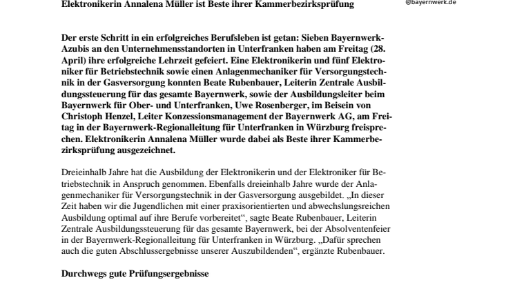 Mehr zur Ausbildung beim Bayernwerk unter www.bayernwerk.de/ausbildung .