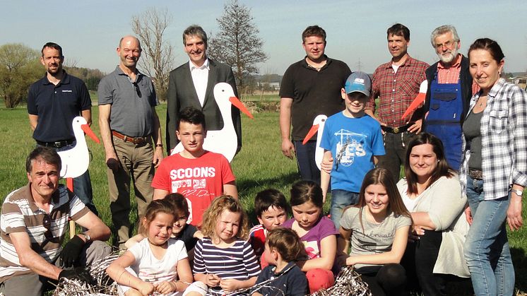 „Eigentlich ist es ja unsere Aufgabe, Vögel zu ihrem eigenen Schutz von unseren Freileitungen fernzuhalten“, scherzte Bayernwerk-Projektleiter Boris Mauderer. Doch in diesem Fall sei das anders: Das Bayernwerk hat am Freitag (31. März) der Marktgemeinde Arnstorf (Landkreis Rottal-Inn, Niederbayern) einen stillgelegten Strommasten im Ortsteil Geiselsdorf übereignet, damit sich darauf eine Storchenfamilie einnisten kann. Eine Bürgerinitiative aus dem Gemeindeteil Hainberg hat dazu am Freitagnachmittag einen Storchenhorst auf dem Masten angebracht – mit Unterstützung von Kindern aus der Kommune.