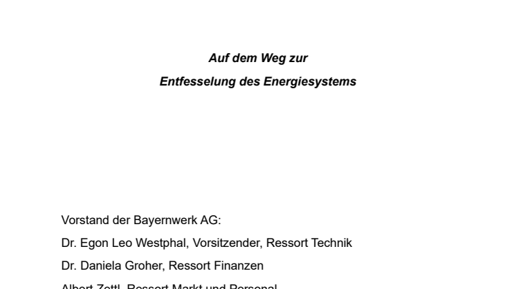 Regensburg. „Nach der Entfesselung der Erneuerbaren Energien und der Entfesselung der Netze geht es jetzt um die Entfesselung des Energiesystems“, erklärt Bayernwerk-Vorstandsvorsitzender Dr. Egon Leo Westphal bei der Jahrespressekonferenz des Bayernwerks in der Regensburger Unternehmensleitung. Gemeinsam stellten Dr. Egon Leo Westphal, Finanzvorständin Dr. Daniela Groher sowie Markt- und Personalvorstand Albert Zettl die Entwicklungen in fünf relevanten Bausteinen des Energiesystems vor.