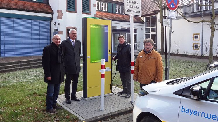 Großostheims Bürgermeister Herbert Jakob, Bayernwerk-Kommunalbetreuer Günter Jira und Uwe Thomas vom zuständigen Bayernwerk-Kundencenter Marktheidenfeld haben die neue Stromtankstelle auf dem Parkplatz der Musikschule im Nöthigsgut am Mittwoch (7. Februar) offiziell in Betrieb genommen. „Wir sind überzeugt, dass der Elektromotor in Zukunft eine bedeutende Rolle bei der lokalen Verkehrsplanung spielen wird“, erklärte Bayernwerk-Kommunalbetreuer Jira. Für den Durchbruch der Elektromobilität sei jedoch auch eine flächendeckende Ladeinfrastruktur nötig, ergänzte Jira.