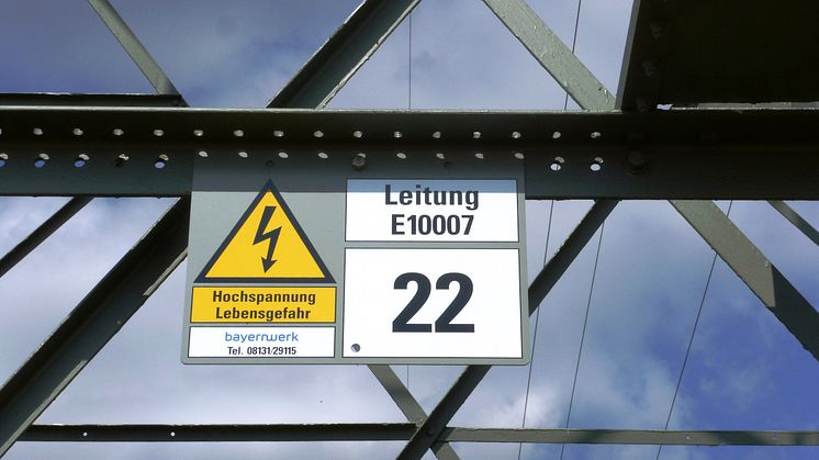 Bei der zügigen Bearbeitung hilft dem Bayernwerk die möglichst genaue Angabe des Leitungsstandorts: „An einem Großteil unserer 110-Kilovolt-Freileitungsmasten finden sich Leitungs- und Mastnummern (siehe Bild), die für den Kontakt mit unserem 110-kV-Serviceteam in Dachau bereitgehalten werden sollten“, erklärt Bayernwerk-Sprecher Köppl. 110-kV-Masten sind in der Regel Stahlgittermasten mit Isolatoren von circa 1,10 Metern Länge. Von Dachau aus werden danach die Einsätze der 110-kV-Servicekollegen im gesamten Bayernwerk-Netzgebiet koordiniert. Für Baumarbeiten nahe der gekennzeichneten 110-kV-Freileitungen ist die ebenfalls häufig auf den Masten angegebene Störungsnummer 08131/29115 rund um die Uhr erreichbar.