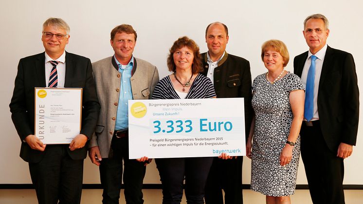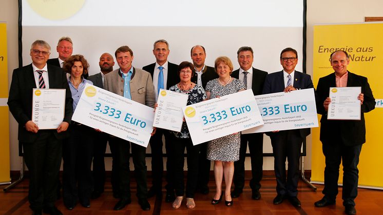 Mit dem Bürgerenergiepreis können Privatpersonen, Vereine, Schulen und andere nichtgewerbliche Gruppierungen ausgezeichnet werden, die mit ihren Ideen und Projekten in ihrem Umfeld einen Impuls für die Energiezukunft geben. Die Preisträger des Bürgerenergiepreises Niederbayern 2015 erhalten jeweils 3.333 Euro und sind: