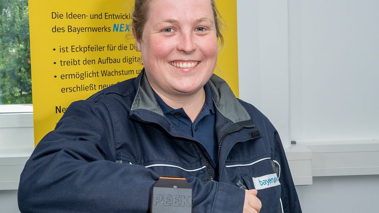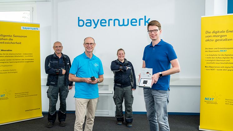 Die ersten Sensoren wurden durch Egon Westphal und Roland Leuchtenberger an Servicetechnikerinnen und Servicetechniker des Bayernwerk-Kundencenters Penzberg übergeben. „Der PEEK-Sensor wird uns bei unseren Einsätzen weitere Sicherheit geben. Natürlich geht nichts über das Beachten von Regeln und das gegenseitige Aufpassen. Aber zu wissen, dass da noch ein digitaler Helfer ist, der mit aufpasst, tut gut“, so die Servicetechnikerin Anna Goldbrunner. Ihr Kollege Michael Bauer ergänzte: „Es ist toll, dass diese Entwicklung aus unserem eigenen Unternehmen heraus entstanden ist. Von Kollegen für Kollegen, das finde ich klasse.“