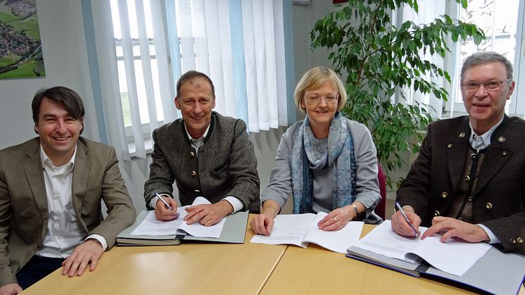 Antdorf/Habach. Die sichere Stromversorgung der Gemeinden Antdorf und Habach im Landkreis Weilheim-Schongau ist auch in Zukunft Aufgabe des Bayernwerks. Die beiden Bürgermeister Klaus Kostalek und Michael Strobl haben am Dienstag, 12. Februar, mit Ursula Jekelius, Leiterin Kommunalmanagement Oberbayern, und Kommunalbetreuer Stefan Drexl (beide Bayernwerk Netz GmbH) den neuen Konzessionsvertrag im Habacher Rathaus unterzeichnet. Die jeweilige Laufzeit beginnt im Mai 2020 und beträgt 20 Jahre.