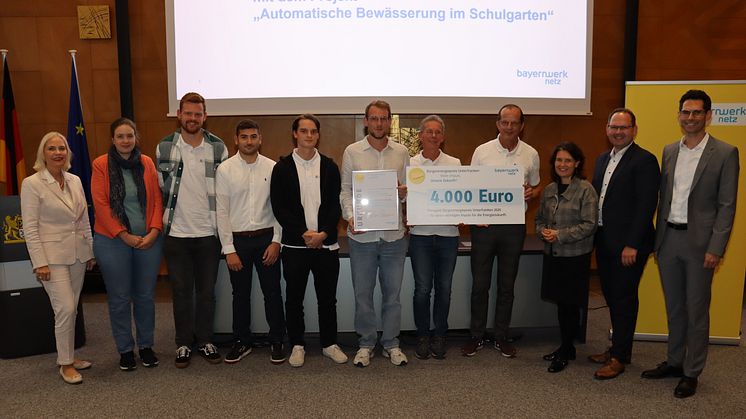 Die Schülerinnen und Schüler im Berufsvorbereitungsjahr der Staatlichen Berufsschule Main-Spessart planten und errichteten einen Schulgarten. Unterstützt wurden sie bei der Installation einer automatisierten Bewässerungsanlage für den neu angelegten Schulgarten von den Schülern der Staatlichen Technikerschule. Sensoren ermitteln den Wasserbedarf der Beete und berücksichtigen dies bei der Zuführung der Wassermenge. Die Steuereinrichtung wird mit Strom einer PV-Balkonanlage mit Batteriespeicher betrieben. Das Gießwasser stammt aus einem Regenwassercontainer. Durch die Kultivierung eines Schulgartens wird den Schülerinnen und Schülern ein Natur- und Umweltbewusstsein sowie ein praxisnaher Umgang mit der lebenswichtigen Ressource „Wasser“ vermittelt. Gleichzeitig bietet das kreative Schulprojekt, das über die Grenzen einer Schulform hinausgeht, den jungen Schülerinnen und Schüler im Berufsvorbereitungsjahr wertvolle Einblicke in technische Ausbildungsberufe und dient so als Vorbild für andere Bildungseinrichtungen. Für ihr Engagement erhalten die Staatliche Berufsschule und die Technikerschule ein Preisgeld von 4.000 Euro.