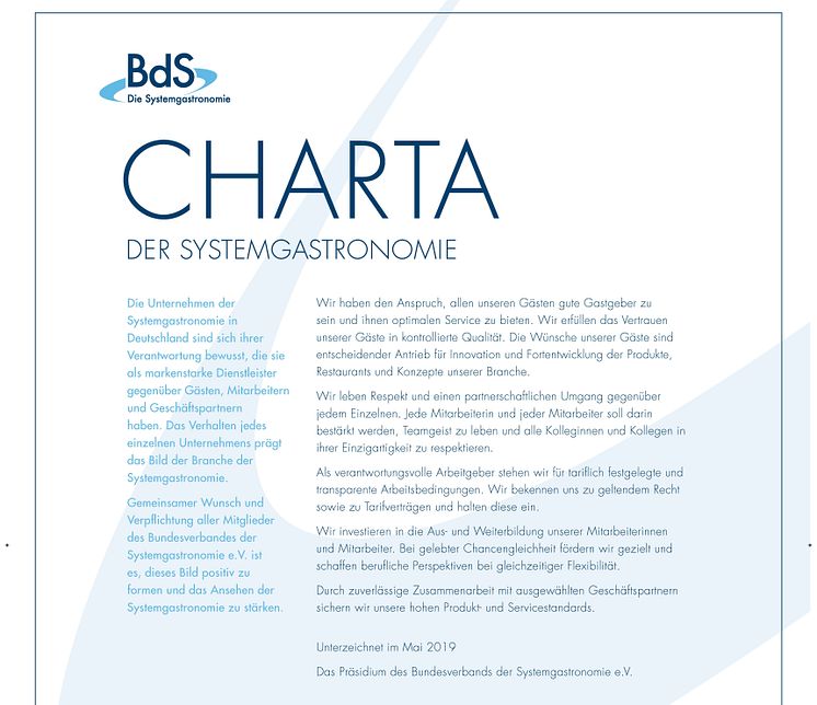 Ausschnitt aus der Charta der Systemgastronomie