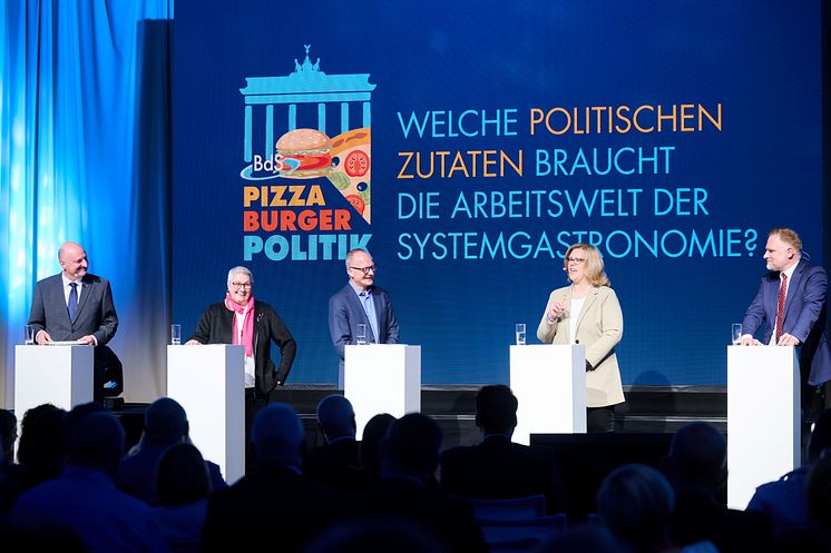 BdS-Polittalk mit Bernd Rützel (SPD), Elke Hannack (DGB), Maike Neuenroth (McDonald’s-Franchisenehmerin) und Peter Aumer (CSU). Modration Ingo Gugisch