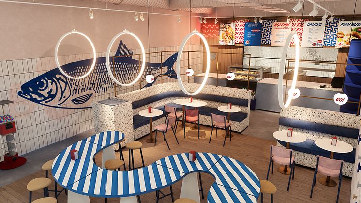 Entspannt, urban und modern: Mit Go! Fish launcht NORDSEE, Europas Kompetenz- und Qualitätsführer in der Fisch-Systemgastronomie, eine junge, trendige Marke mit neuem Konzept. Klarer Fokus: Fisch- und Seafood von höchster Qualität in angesagter Pop-Art Atmosphäre kombiniert mit coolen Vintage-Elementen. Inspiriert von den 60er-Jahren versprüht Go! Fish Retro-Charme der besonderen Art.