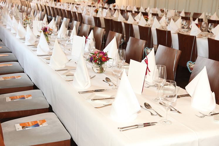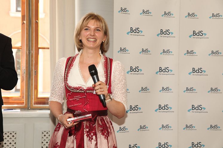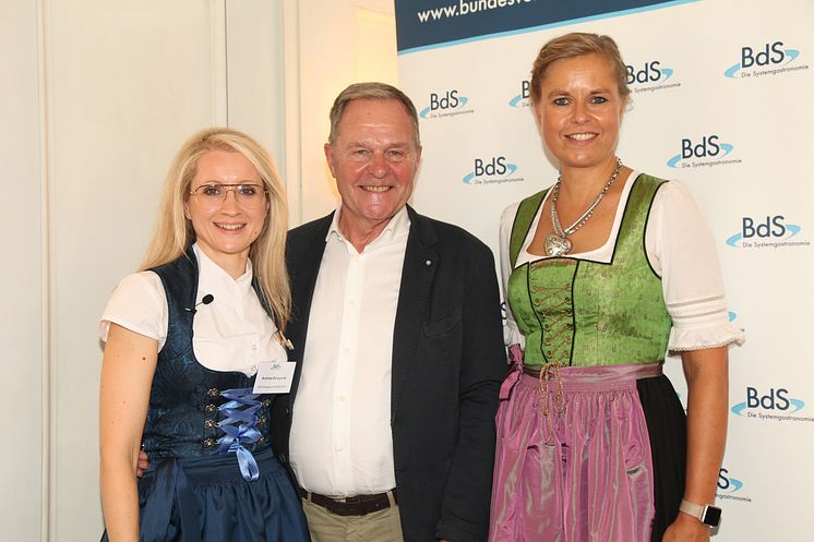 Highlight des Mittagsempfang war die Verleihung des Deutschen Systemgastronomie-Preises. Die diesjährigen Preisträger sind Prof. Dr. Juliane Fuchs sowie Jürgen Rachold von der Berufsakademie Sachsen – Staatliche Studienakademie Plauen für die Entwicklung und Etablierung des speziell auf die Systemgastronomie zugeschnitten dualen Studiengangs „Systemgastronomie-Management“. BdS-Vizepräsident Alexander van Bömmel gratulierte und begründete die Wahl: „Die Systemgastronomie in Deutschland hat im letzten Jahr knapp 14 Mrd. Euro Umsatz erwirtschaftet. Das wirtschaftliche Gewicht unserer Branche ist nicht von der Hand zu weisen. Es ist an der Zeit, dass sich auch die Ausbildung unserer neuen Führungskräfte und Manager der Zukunft gezielt diesem Wirtschaftssektor annimmt.“