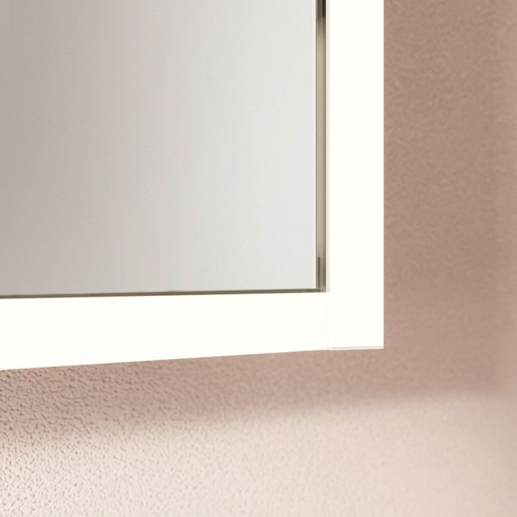 Durchgehender Lichtrahmen mit integrierten Türen: Der neue, auch als Einbauvariante erhältliche Spiegelschrank rl20 von burgbad hat eine umlaufende LED-Beleuchtung ganz ohne die üblichen Verschattungseffekte in den Ecken und ist mit dem RAL-Gütezeichen „Möbel Zirkulär Nachhaltig“ ausgezeichnet. Foto: burgbad