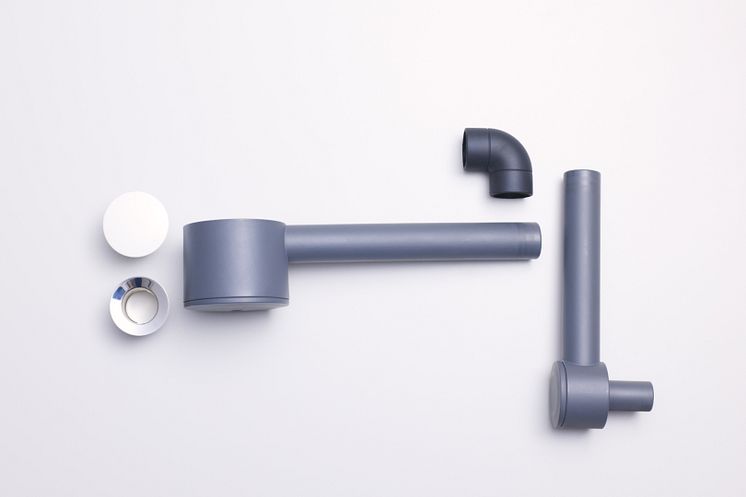 Eins, zwei, drei montiert: Der neue Siphon burgbad cleanFlow vereinfacht und verkürzt die Montage erheblich. Er besteht aus nur wenigen Teilen und ist einfach anzupassen und zu montieren. (Foto: burgbad)