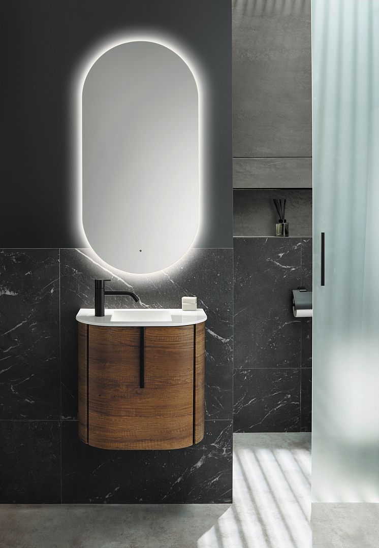 Gästebadlösung mit Stil: Mit der neuen Badmöbelkollektion Lavo 2.0 von burgbad lassen sich auch kleine Bäder für den großen Auftritt stylen (Foto: burgbad)
