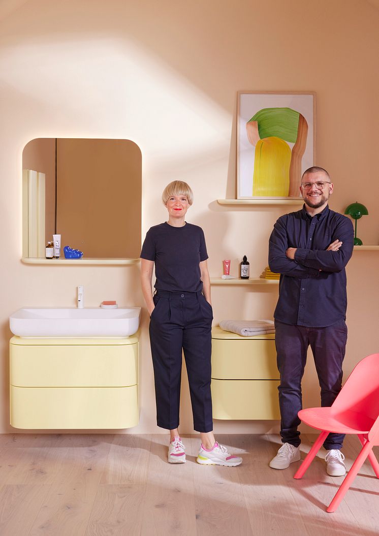 Eva Marguerre und Marcel Besau: Die Gründer des Hamburger Studios Besau-Marguerre bringen mit ihrer für den Badmöbelspezialisten burgbad entwickelten Serie b:me einen neuen, soften Look in das zeitgenössische Badezimmer-Design. (Foto: Anne Deppe; burgbad)