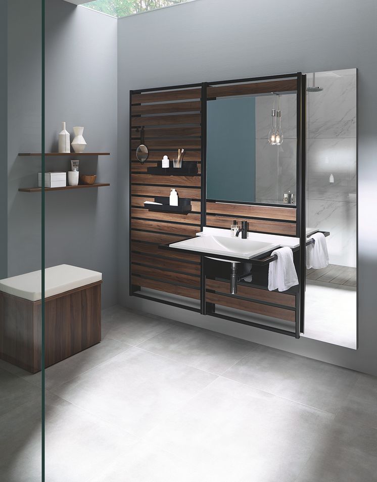 Wohnlich und dennoch luftig: In Nussbaum-Dekor wirkt das neue Programm burgbad Flex besonders edel. (Foto: burgbad)