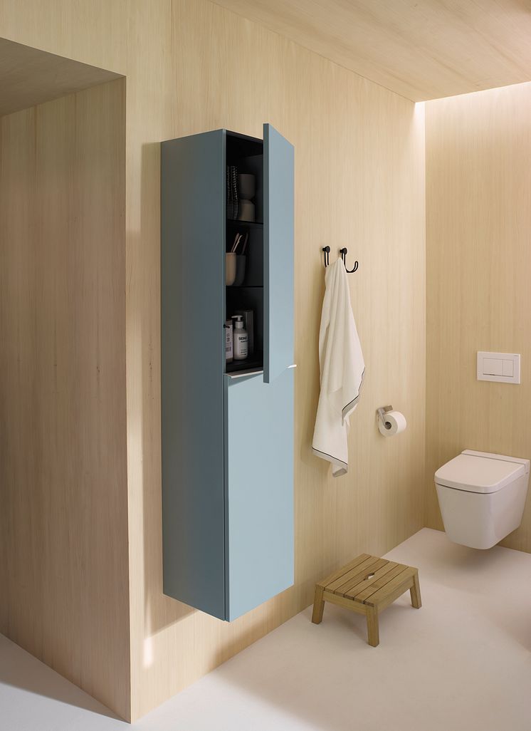 Pragmatisch und cool: Ganz schnörkellos schafft die neue burgbad-Badmöbelkollektion Fiumo aus dem Schnelllieferprogramm sys10 mit attraktivem Preis-Leistungs-Verhältnis Raum für Ordnung – auch optisch. Hier signalisieren Form und Oberfläche Eisblau Softmatt (hier mit weißer Griffleiste) Klarheit, fügen sich aber auch nahtlos in eine wohnliche Umgebung ein.