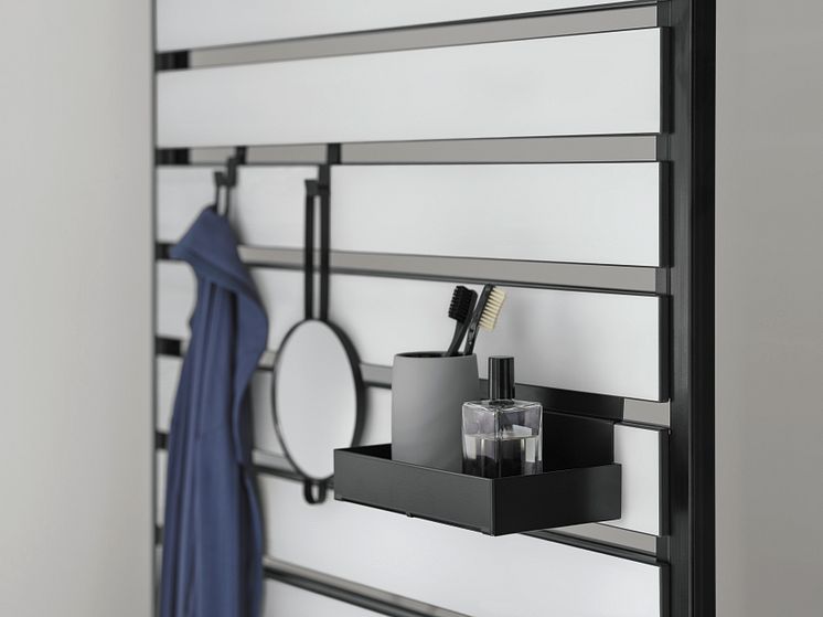 Die Module können flexibel positioniert und individuell ausgestattet werden und damit auch ganz unterschiedliche Funktionen erfüllen: als Waschtischeinheit, zur Aufnahme von Stauraum, als Accessoires-Modul oder auch als Raumteiler.