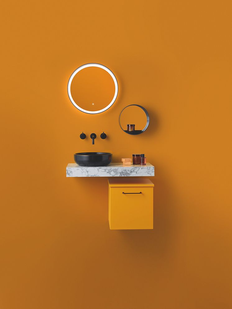 Mit der Palette der zwölf Trendfarben Champagner, Mint, Senf, Orange, Altrosa, Rot, Dunkelrot, Hellgrün, Grün, Hellblau, Nachtblau und Schwarz wird die Badgestaltung zum Farbrausch: Starke Akzente setzen, Kontraste zeichnen oder lieber Ton-in-Ton arrangieren, Farbverläufe malen, Gute-Laune-Inseln schaffen oder die Badausstattung mit der Architektur verschmelzen lassen – alles ist möglich.