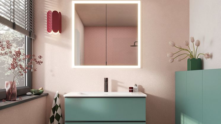 Designinnovation: Spiegelschrank gerahmt von einem homogenen Lichtband