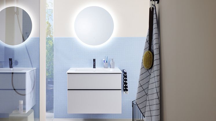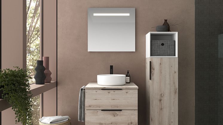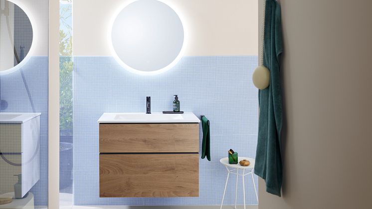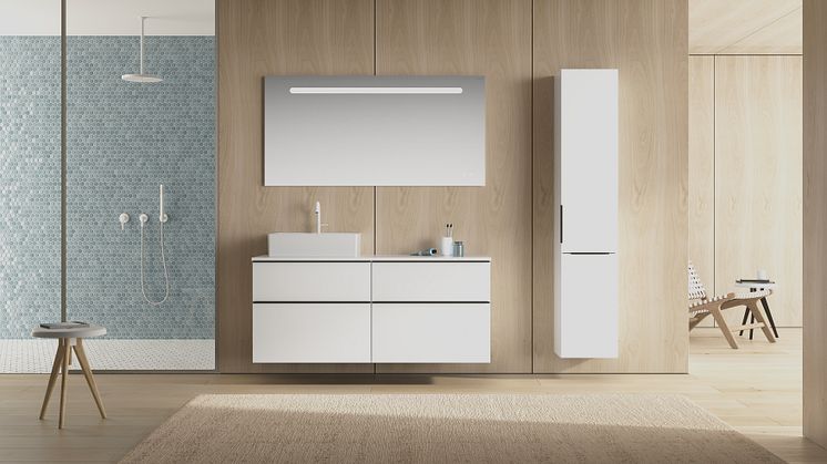 Details wie die fein verarbeiten Laserkanten ohne sichtbare Leimfugen zeigen die gute Verarbeitungsqualität, die auch durch das DGM-Herkunftslabel „Möbel Made in Germany“ unterstrichen wird. Mit der Zertifizierung durch den Blauen Engel ist die Kollektion zudem eine der ganz wenigen Badmöbelserien, die die hohen Anforderungen an Gesundheits- und Umweltverträglichkeit von Deutschlands ältestem und bekanntestem Umweltsiegel erfüllen.