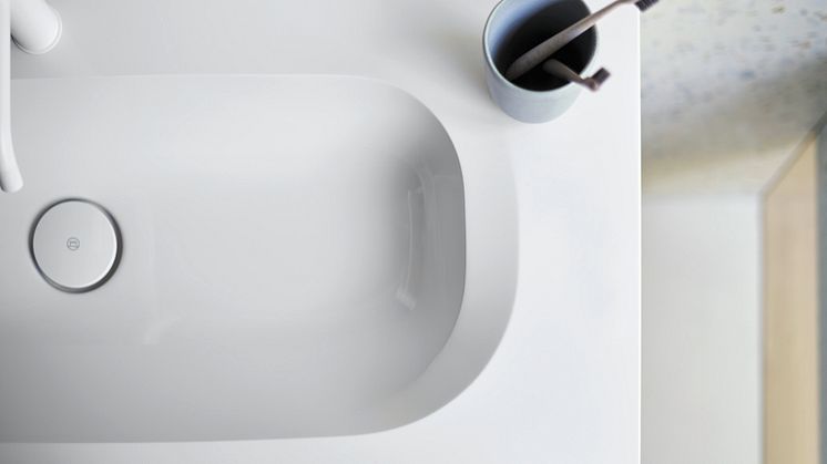 Das dezente Spiel mit Linien und Ebenen findet sich auch in der Form des Waschtischs wieder, bei dem der Übergang von planer Ablagefläche zur Mulde durch eine weich angeschnittene Randung an den Seiten des Beckenovals fließend ausgestaltet ist. Das damit entstehende reizvolle Licht- und Schattenspiel erinnert an die Konturen edler Porzellanschalen. Patrick Freys kunstvoller Umgang mit den in Material übertragenen Linien und ineinanderfließenden Ebenen wirkt so selbstverständlich und natürlich, wie der Name es anklingen lässt: Fiumo ist von italienisch „Fiume“ (Fluss, Strom) abgleitet.