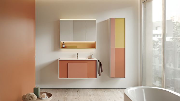 Farbe ist bei Moto integrales Element des Designs. Ob Farbharmonie oder Kontrastprogramm – die Badmöbelkollektion aus dem sys20-Designlinien-Segment zeigt, welche Möglichkeiten in der neuen Farbpalette von burgbad stecken. Moto integriert die miteinander kombinierbaren Basisfarben und Oberflächen in Melamin, Mehrfachlackierung Solid Matt oder Echtholzfurnier und bindet sie durch den Korpusrahmen im Framed Look zusammen. Durch die Option, Fronten und Korpusse (gegen Aufpreis) in jeder Wunschfarbe aus dem RAL-Spektrum fertigen zu lassen, bietet Moto zudem unendliche Möglichkeiten der Raumgestaltung und der Kontextualisierung für ein ganzheitliches Interior Design.