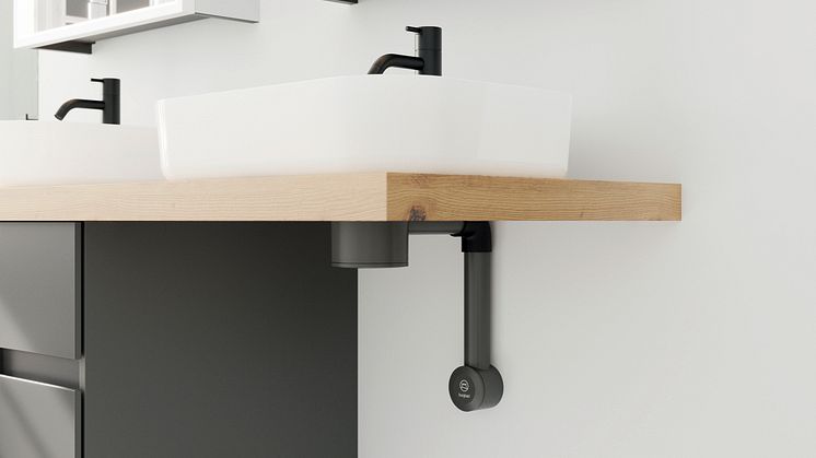 burgbad cleanFlow ist das perfekte Tool zur Realisierung komfortabler Konsolen-Waschtischanlagen. Farblich ist der aus hochwertigem, anthrazitfarbenem Kunststoff gefertigte Siphon auf die Innenräume der burgbad-Waschtischunterschränke abgestimmt. Durch den hochliegenden Siphon und die geradlinige Führung der Rohre macht er aber auch unter offenen Konsolenlösungen eine gute Figur und lässt dort besonders viel Bewegungsspielraum. Damit bietet er sich auch für die Gestaltung minimalistischer und barrierefreier Konsolenlösungen an. Der Clou: Mit dem burgbad cleanFlow+ lassen sich nun erstmals auch Aufsatzwaschtische ohne Hahnlochbank und selbst dünnwandige Aufsatz-Waschtische und Sonderlösungen mit Schalen sicher stauen.