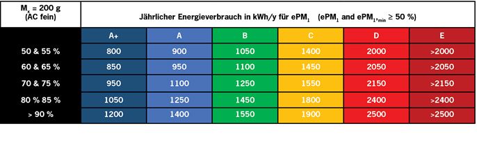 Energieklassen der Filterklasse ePM1