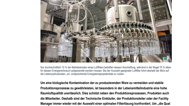 • Hygienische Lebensmittelproduktion dank effizienter Luftfilter