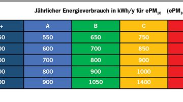 • Energieklassen der Filterklasse ePM10