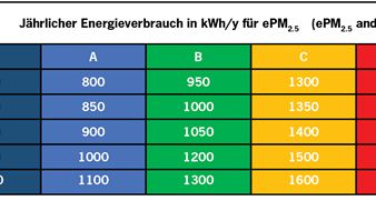 • Energieklassen der Filterklasse ePM2.5