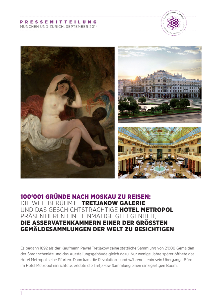 Die weltberühmte Tretjakow Galerie und das geschichtsträchtige Hotel Metropol präsentieren eine einmalige Gelegenheit, die Asservatenkammern einer der grössten Gemäldesammlungen der Welt zu besichtigen.