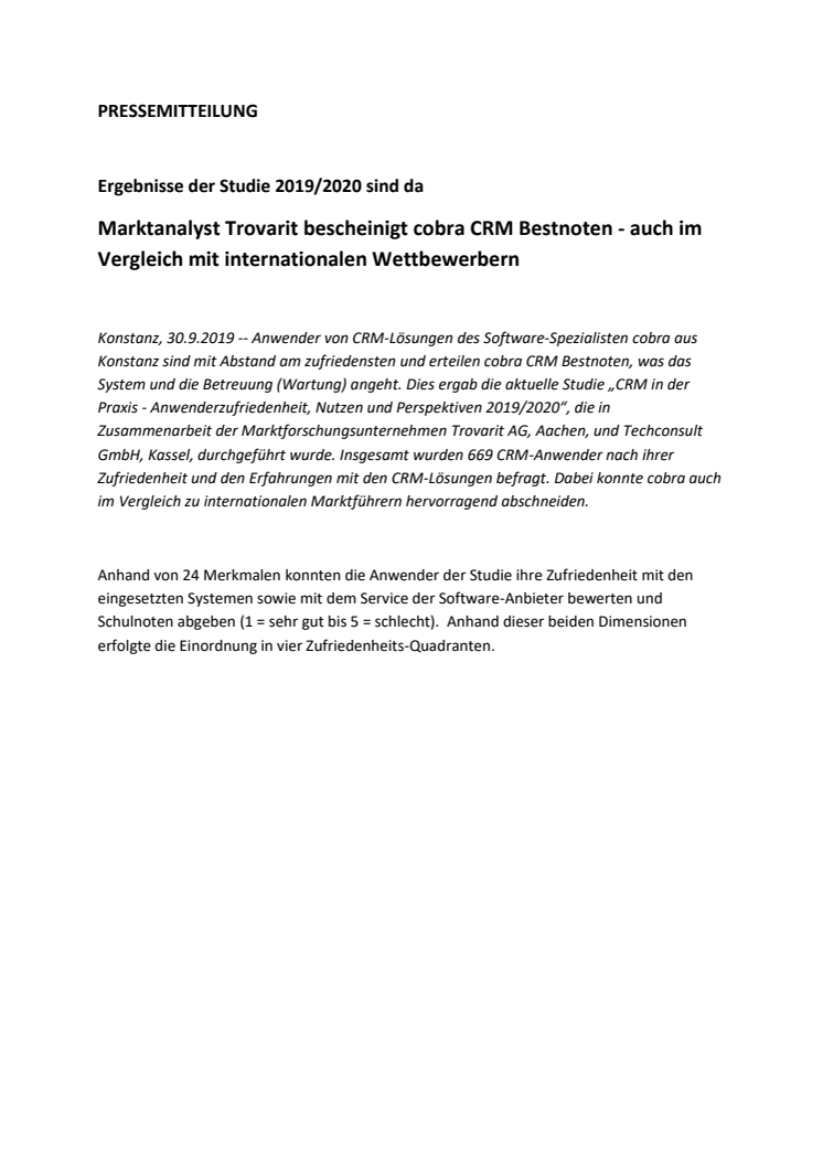 Marktanalyst Trovarit bescheinigt cobra und Partnern Bestnoten