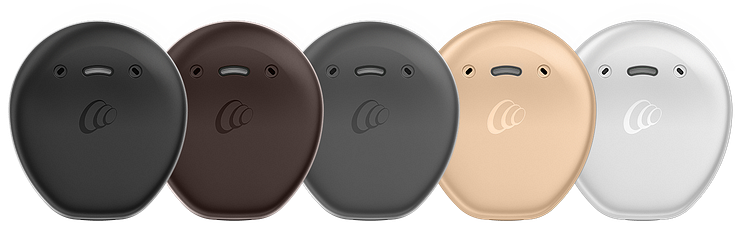 Der frei vom Ohr getragene Cochlear™ Nucleus® Kanso® 2 Soundprozessor ist in fünf verschiedenen Farben erhältlich.