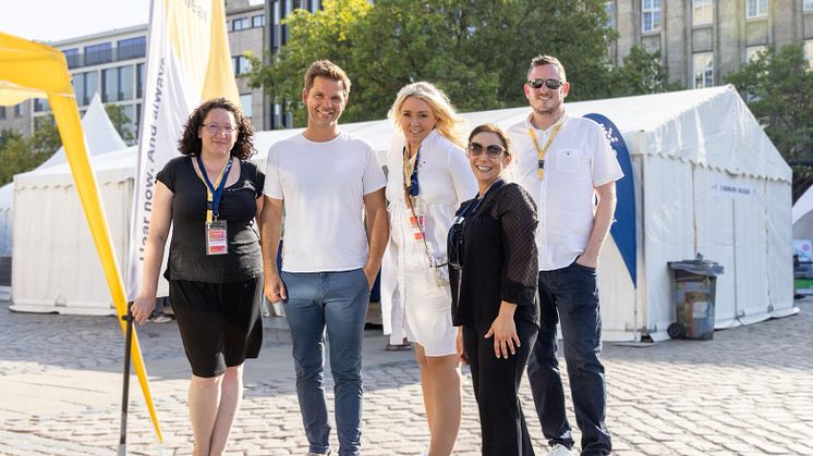 Cochlear informiert beim 36. Entdeckertag der Region Hannover – auch Steffen Krach, Regionspräsident der Region Hannover (2. von li.), stattete dem Cochlear Team um Janine Dersch (3. von li.) beim Entdeckertag einen Besuch ab