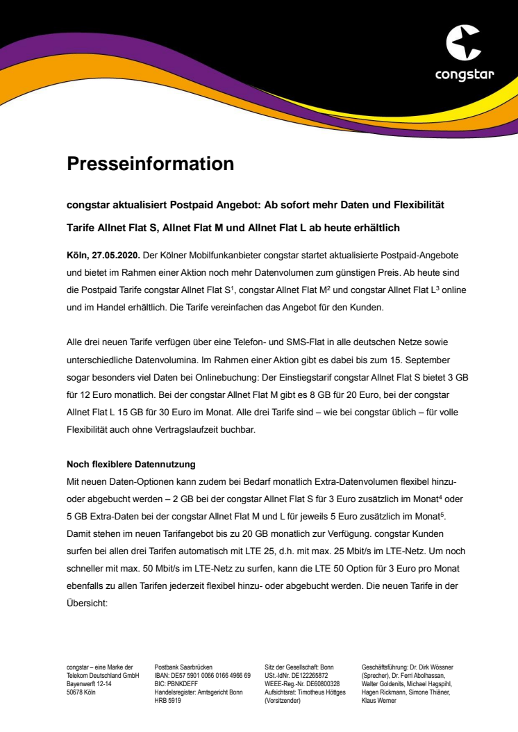 congstar aktualisiert Postpaid Angebot: Ab sofort mehr Daten und Flexibilität