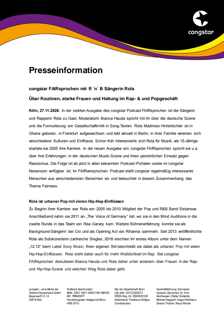 congstar FAIRsprochen mit R ´n` B Sängerin Rola