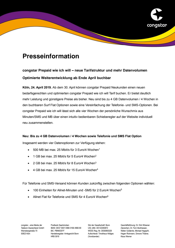 congstar Prepaid wie ich will – neue Tarifstruktur und mehr Datenvolumen