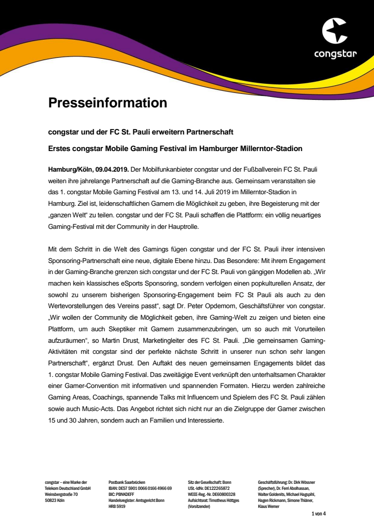 congstar und der FC St. Pauli erweitern Partnerschaft