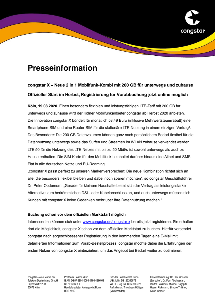 congstar X – Neue 2 in 1 Mobilfunk-Kombi mit 200 GB für unterwegs und zuhause