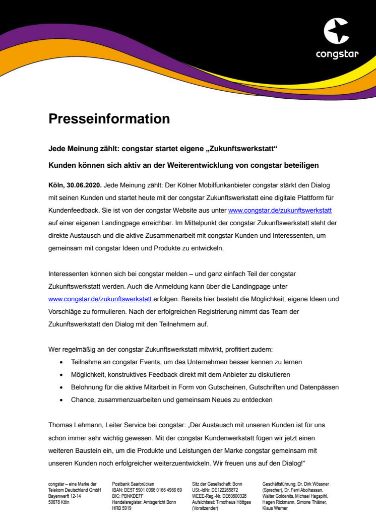 Jede Meinung zählt: congstar startet eigene „Zukunftswerkstatt“