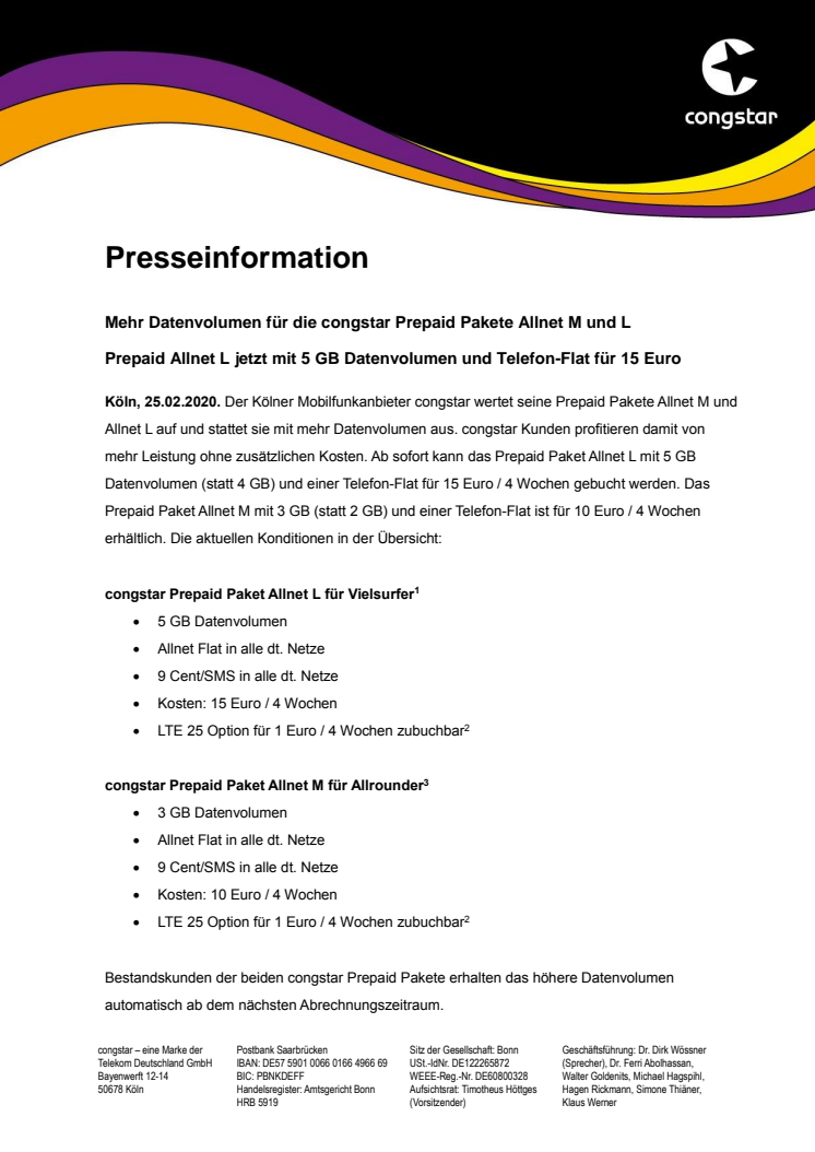 Mehr Datenvolumen für die congstar Prepaid Pakete Allnet M und L