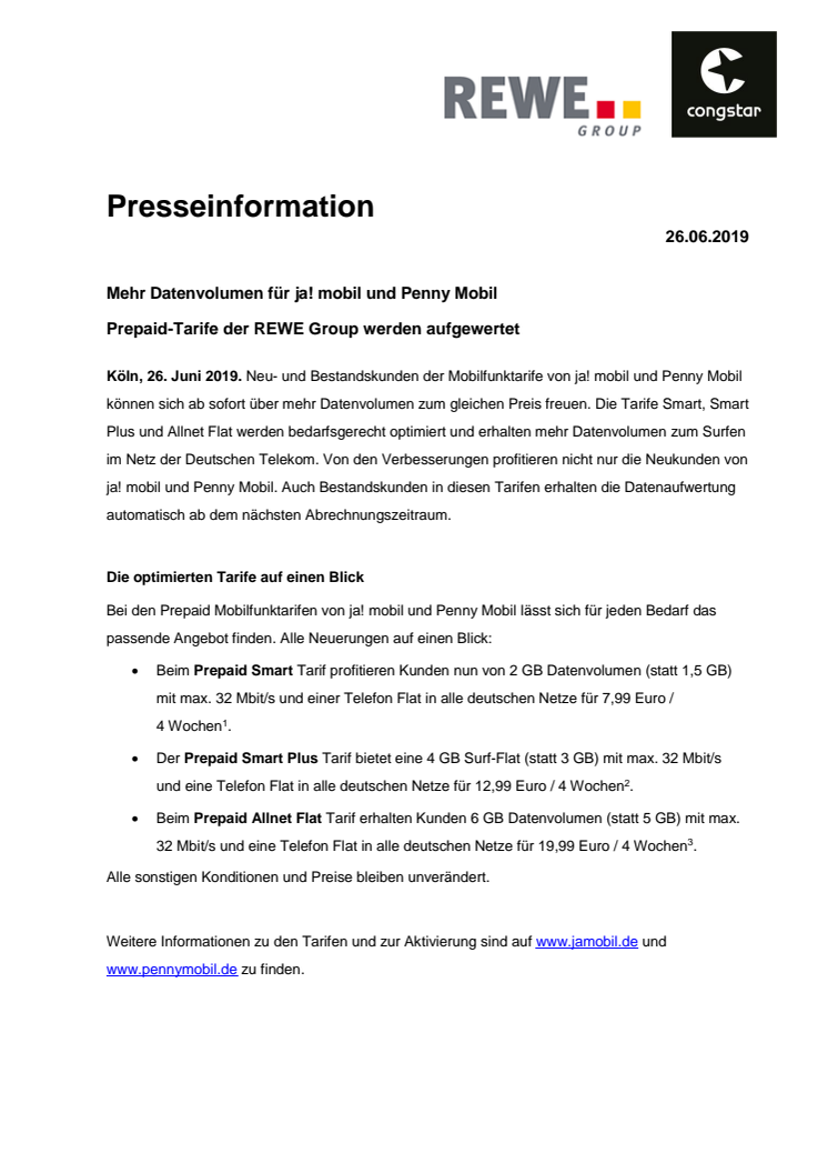 Mehr Datenvolumen für ja! mobil und Penny Mobil