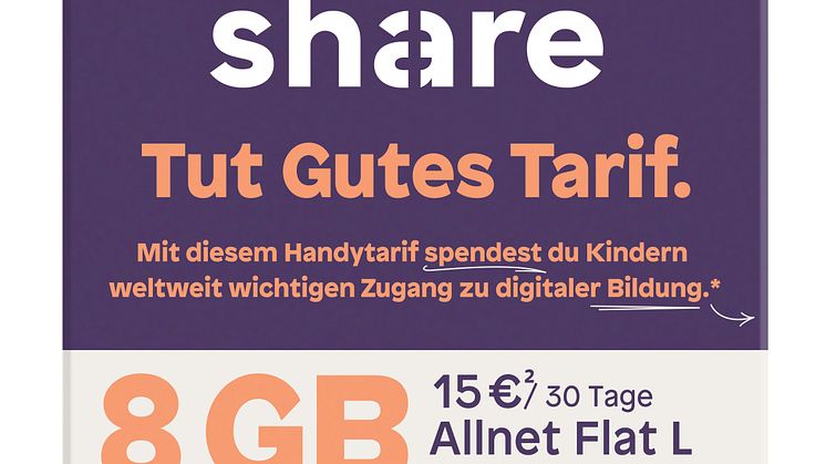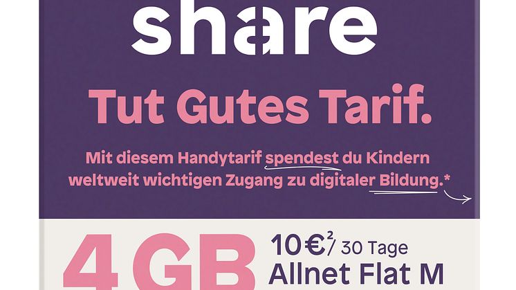 Mit den „share Tut Gutes"-Tarifen und -Optionen bieten congstar und share eine neue Möglichkeit, mit Mobilfunk dauerhaft ein soziales Projekt zu unterstützen. Die Kund*innen selbst müssen nichts weiter tun, sie ermöglichen mit jedem aktivierten Mobilfunktarif oder jeder gebuchten Option jeden Monat Kindern in Kenia automatisch Zugang zu digitalen Bildungsprogrammen für die Dauer der Vertragslaufzeit. Weitere Informationen sind unter www.share-mobile.de zu finden.